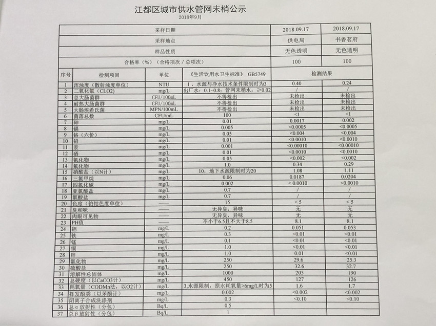水質(zhì)公示