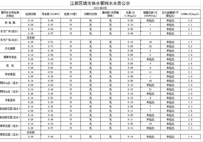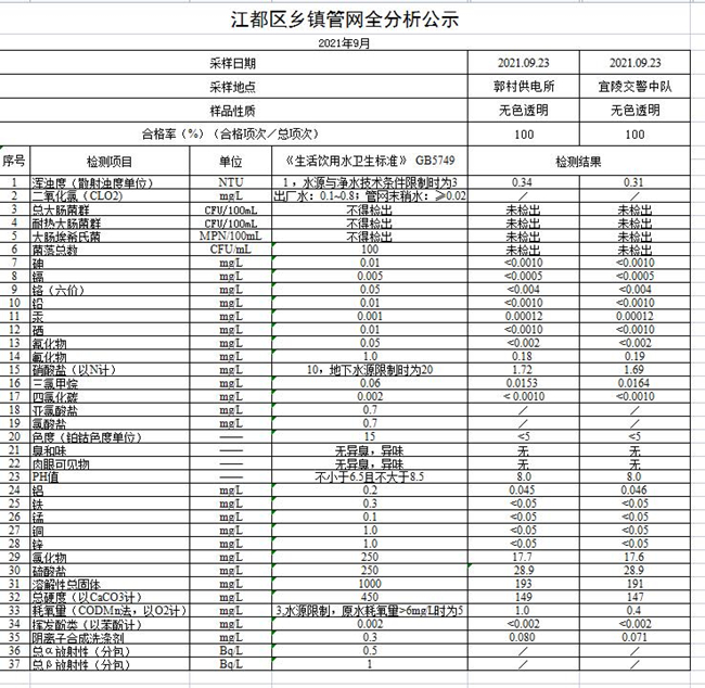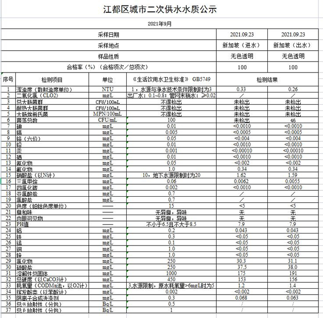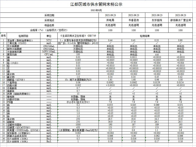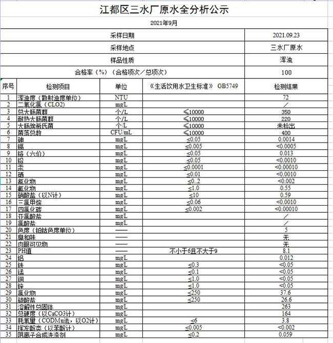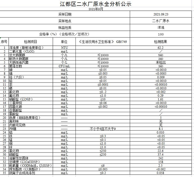 水質(zhì)公示
